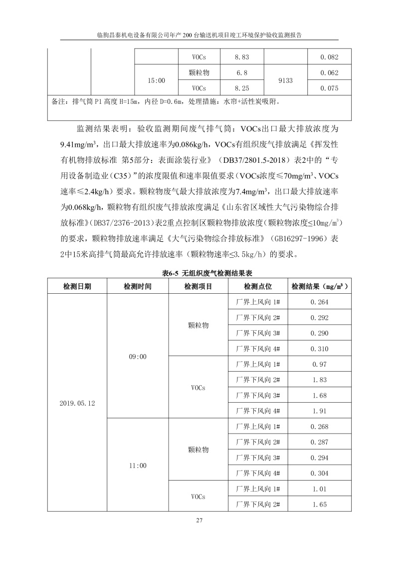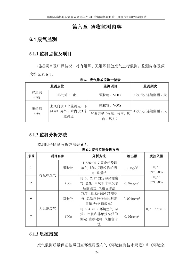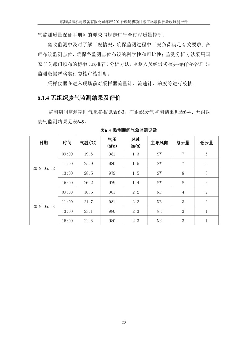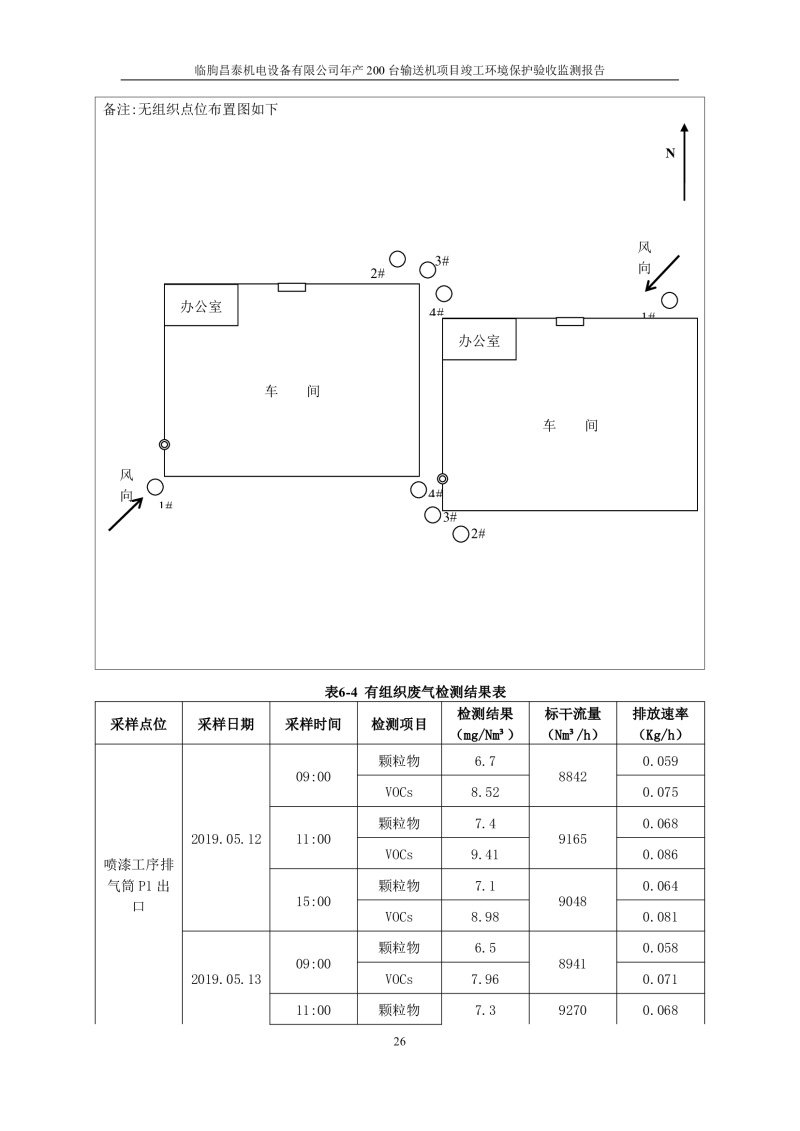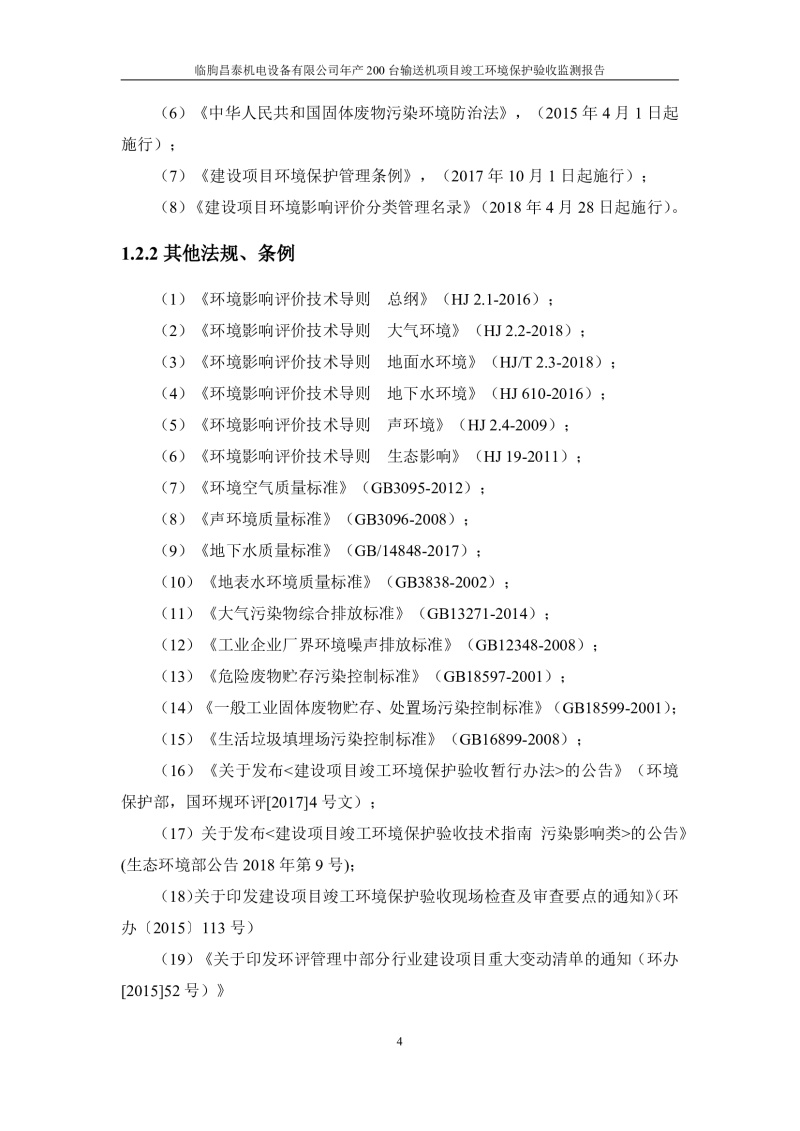 根據(jù)《建設(shè)項目竣工環(huán)境保護驗收管理辦法》(原國家環(huán)保總局令第13號)、《建設(shè)項目竣工環(huán)境保護驗收暫行辦法》、《建設(shè)項目竣工環(huán)境保護驗收技術(shù)指南 污染影響類》(生態(tài)環(huán)境部公告[2018]9號)的有關(guān)規(guī)定,臨朐昌泰機電設(shè)備有限公司現(xiàn)將年產(chǎn)200臺輸送機項目竣工環(huán)境保護驗收監(jiān)測報告表、其他需要說明的事項等內(nèi)容公示如下: