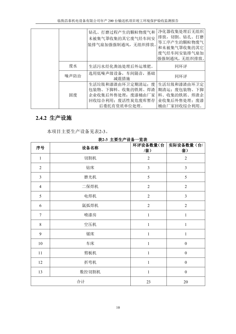 建設(shè)內(nèi)容:該項目總占地面積1854平方米,總建筑面積1854平方米,主要為生產(chǎn)車間、辦公室等。項目實際總投資200萬元,其中環(huán)保投資5萬元。切割機、鉆床等設(shè)備共計23臺(套),具備年產(chǎn)200臺輸送機的生產(chǎn)能力。