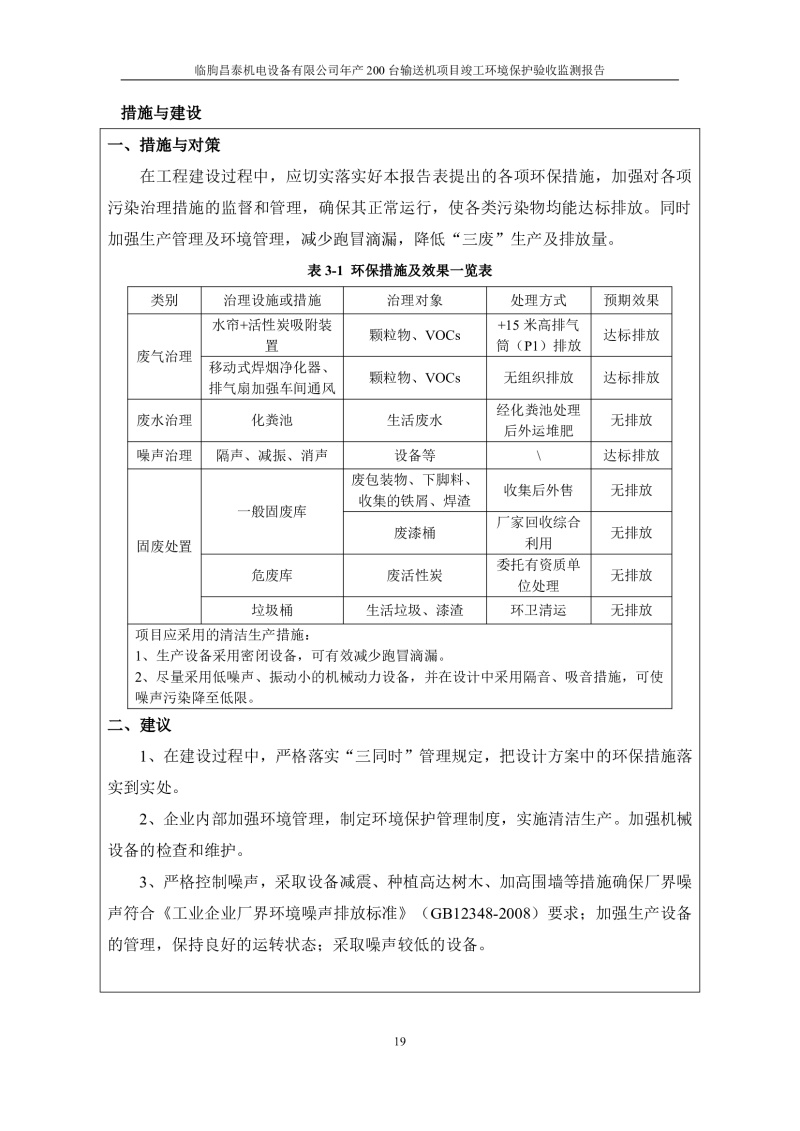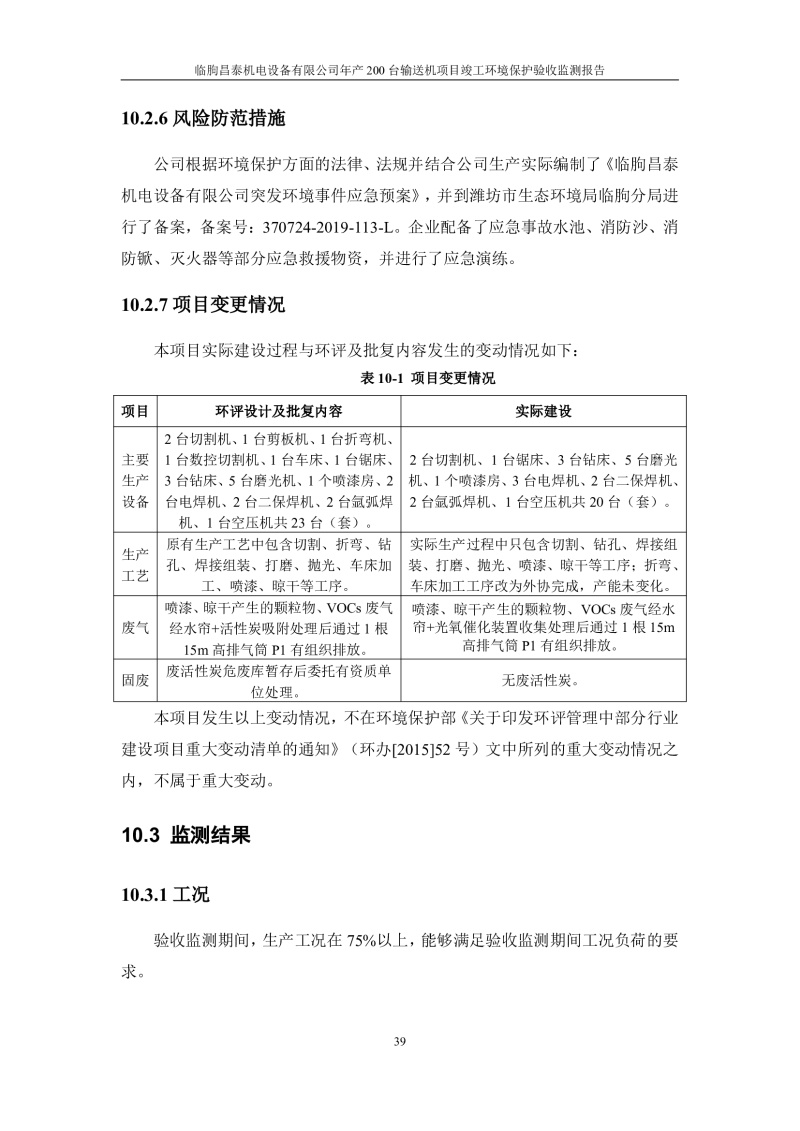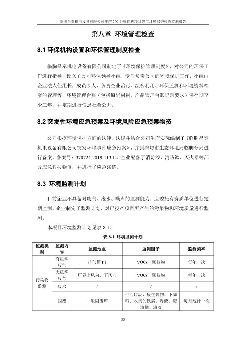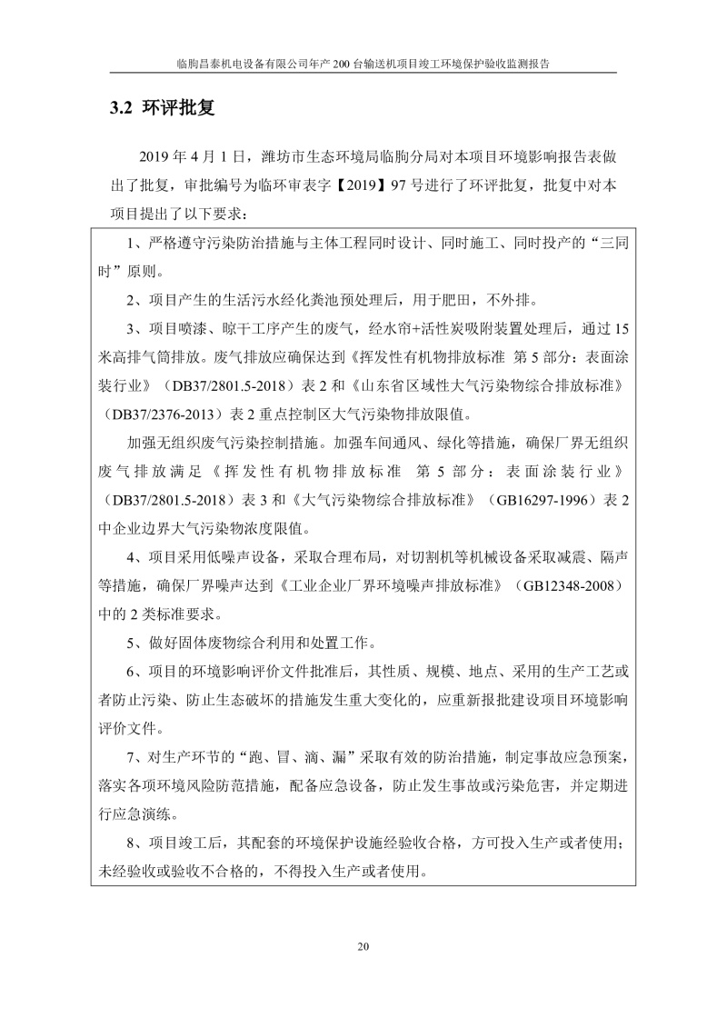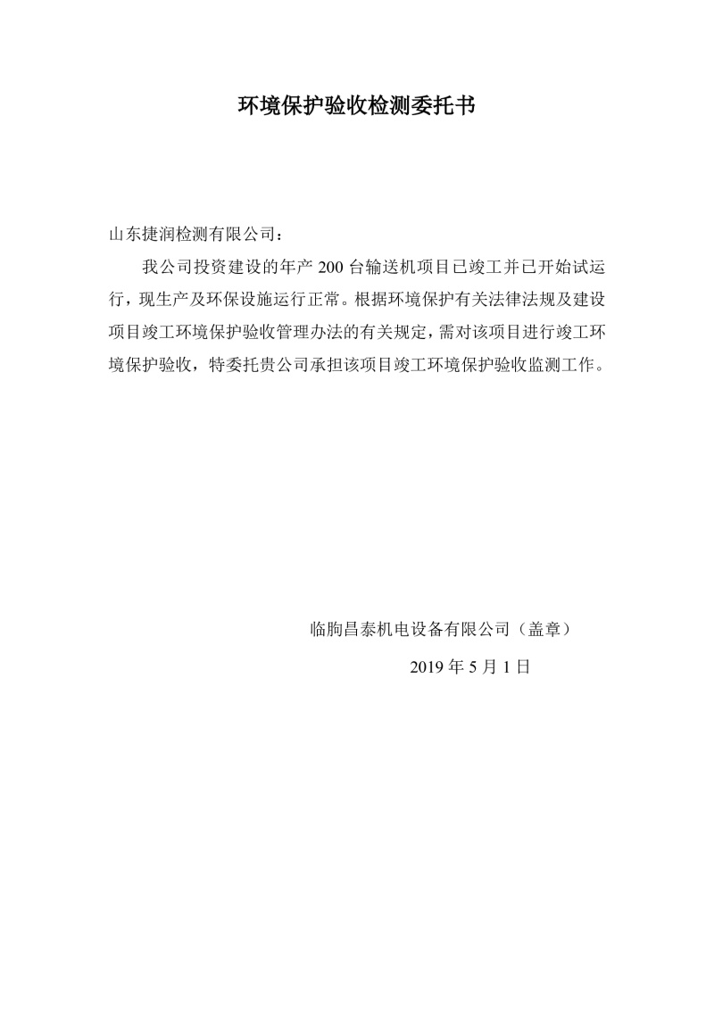 臨朐昌泰機電設(shè)備有限公司現(xiàn)將年產(chǎn)200臺輸送機項目竣工環(huán)境保護驗收監(jiān)測報告表、其他需要說明的事項等內(nèi)容公示