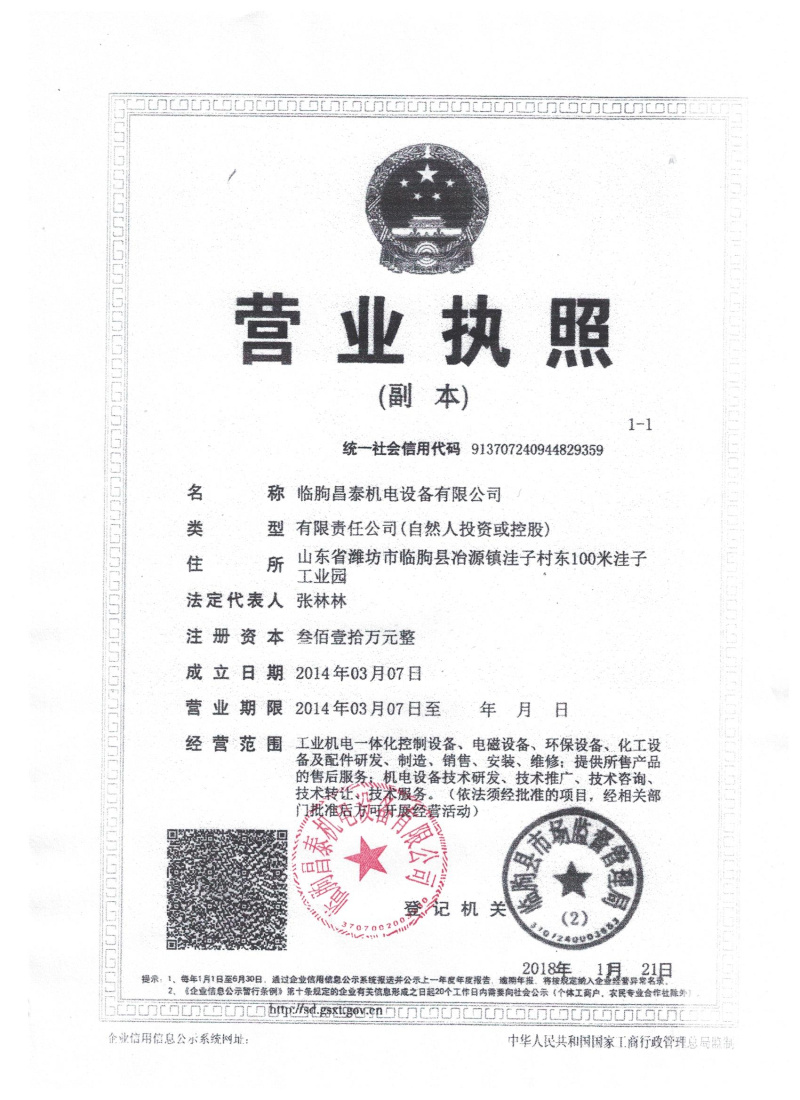 建設(shè)單位:臨朐昌泰機電設(shè)備有限公司